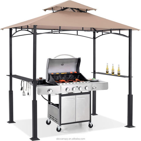 2 yan raflar ile abcgölgelik çift katmanlı açık barbekü barınak 5 Hooks şişe açacağı barbekü Grillgazebo Grillpavillon